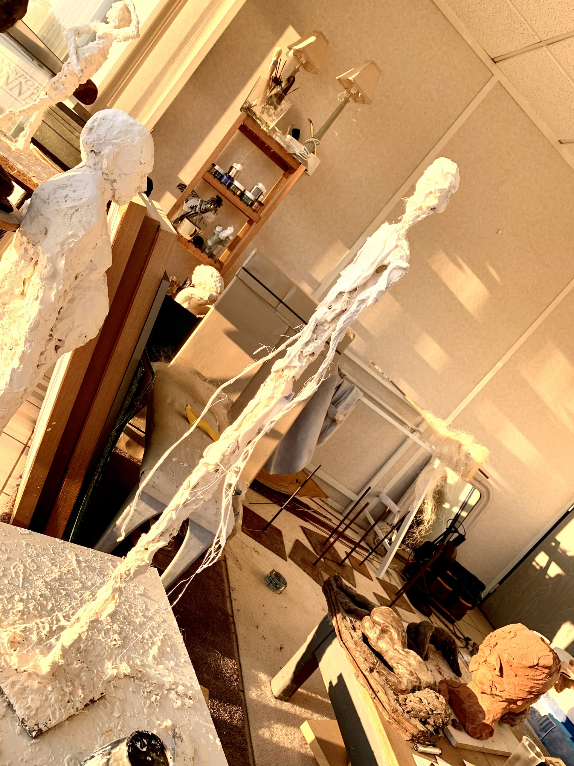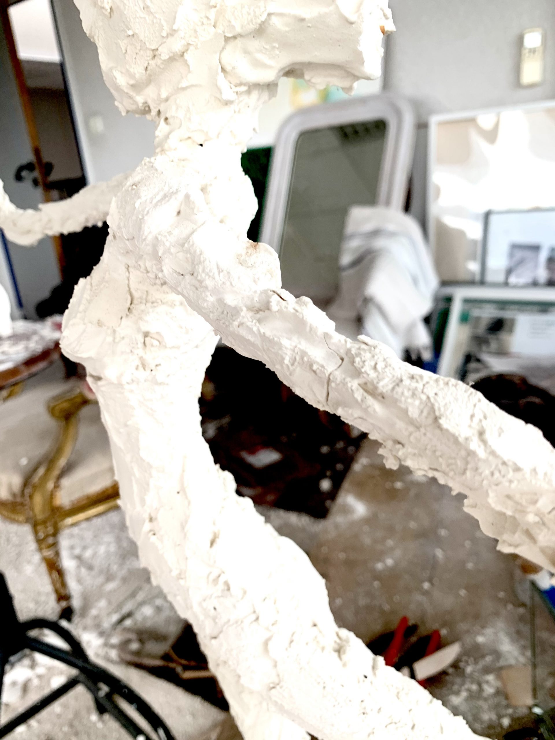 Chaque coup de sculpture est une affirmation, une recherche de l’équilibre entre le corps et la liberté de l’expression. L’artiste, en modelant le plâtre, explore non seulement les formes externes, mais aussi l’essence même de l’être, capturant des moments de grâce et de mouvement.